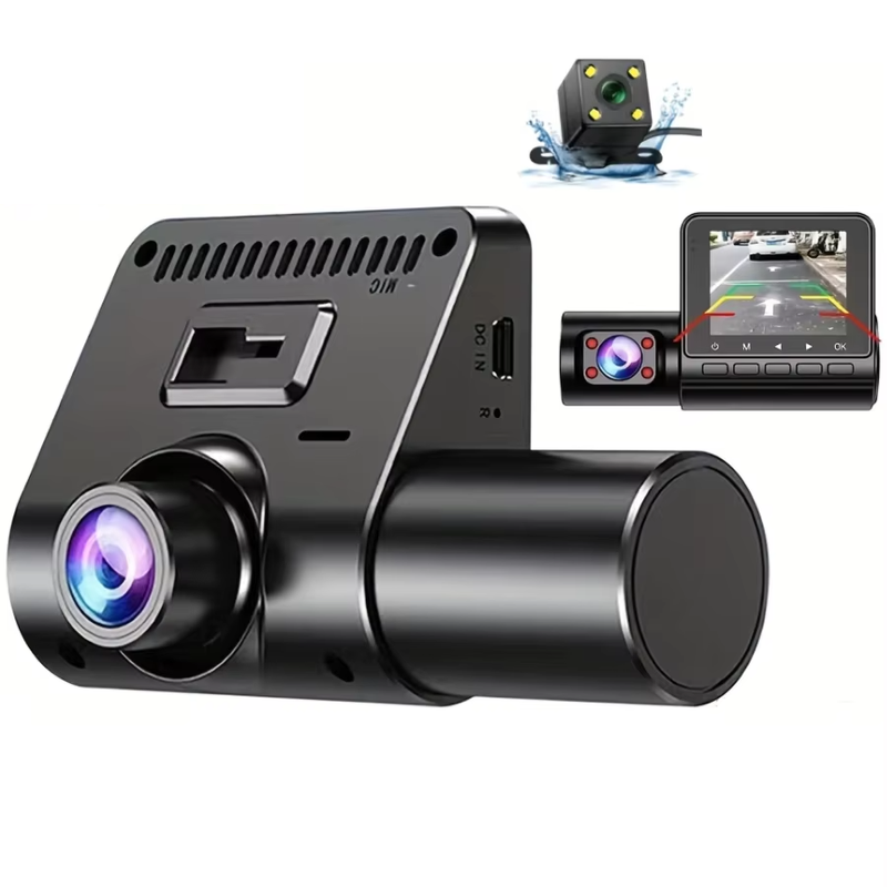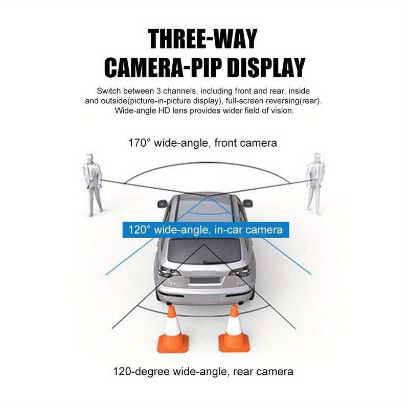Channel Automobile DVR High Definition 1080P 3-Lens Interior Dashboard Camcorder with Camber for Three Directions DVR Video Recorder Video Mini Dashboard Camera 2-Inch