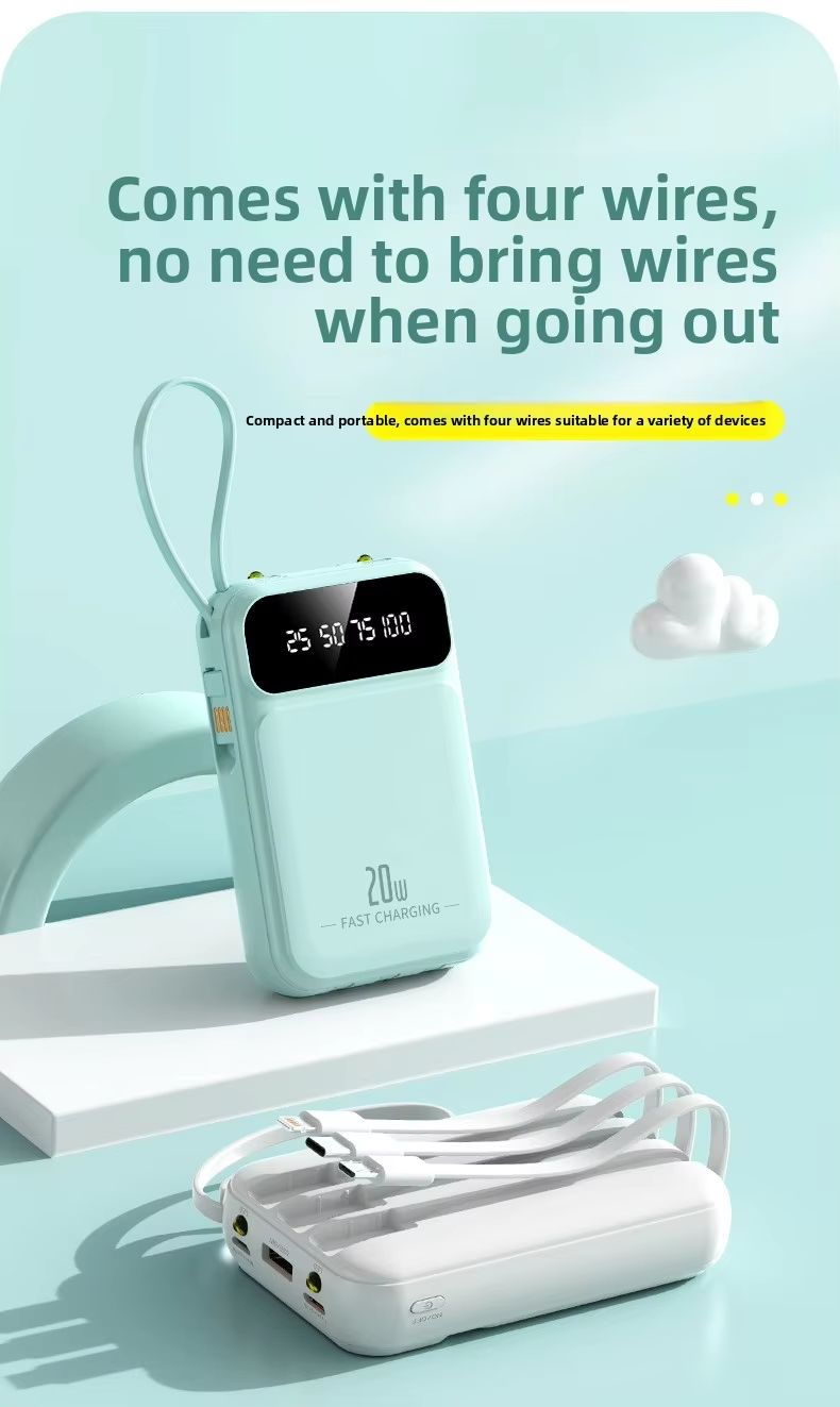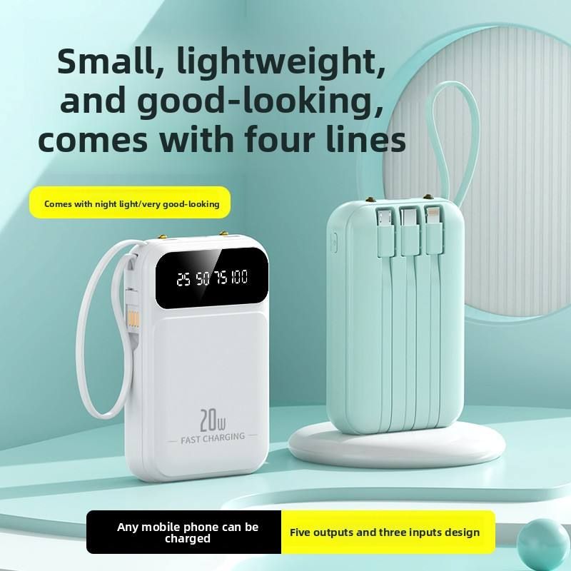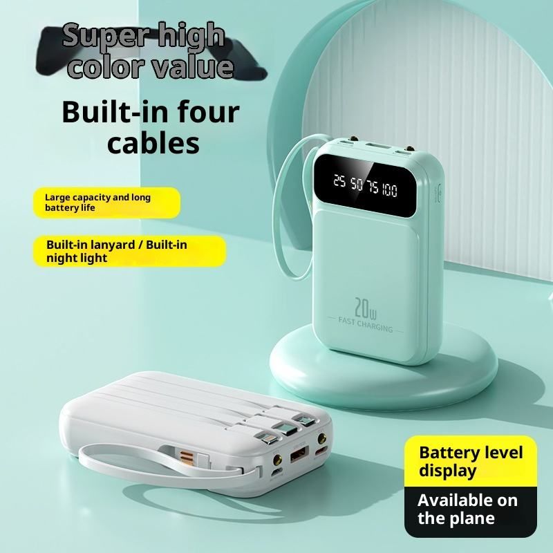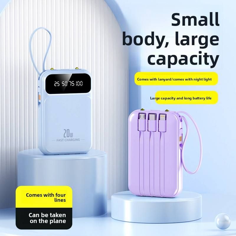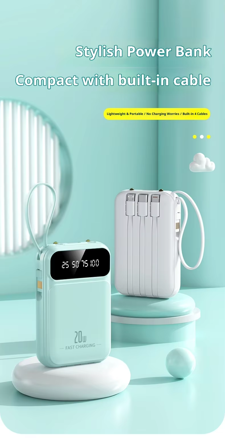 Mini portable power bank with 20000mAh capacity, large capacity, built-in