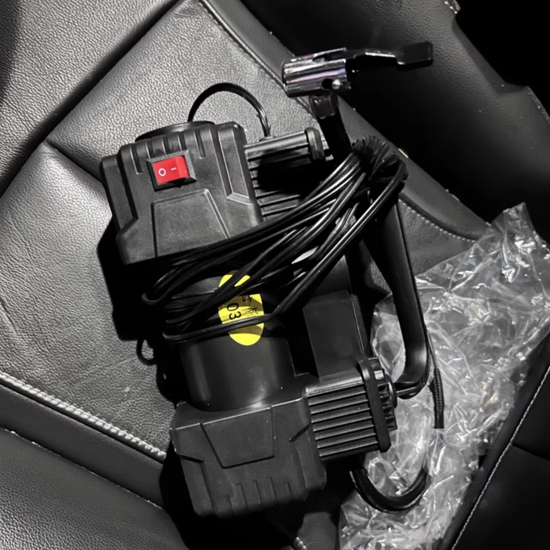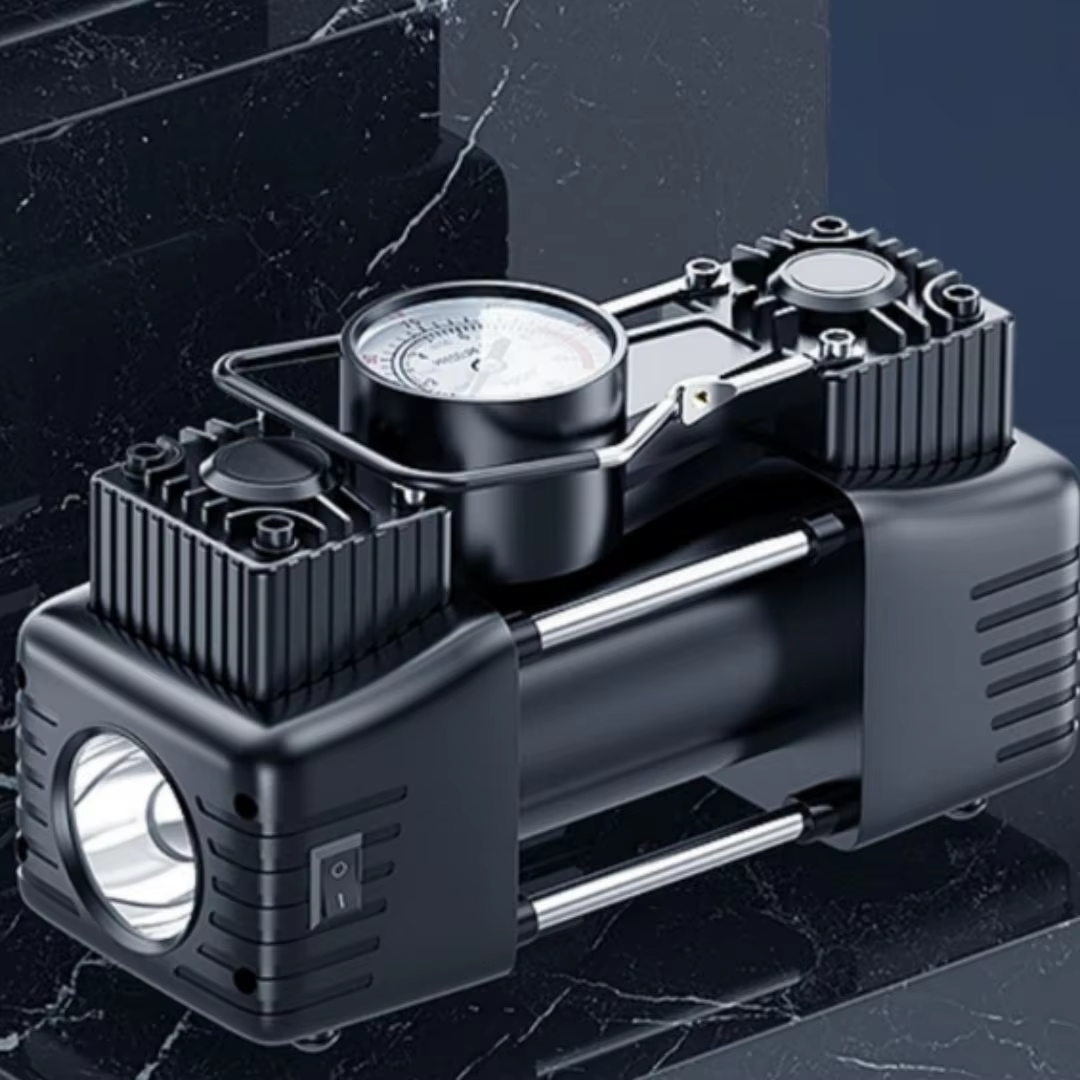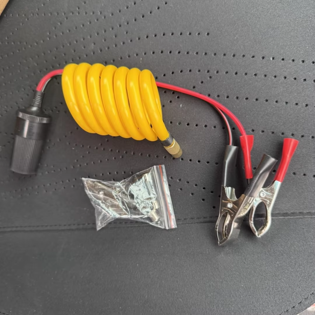 Portable mini 12V powerful dual-cylinder air compressor tire electric pump, with extension cord and battery clamp