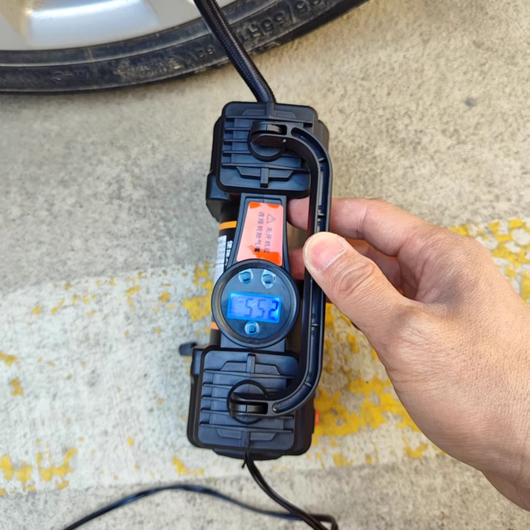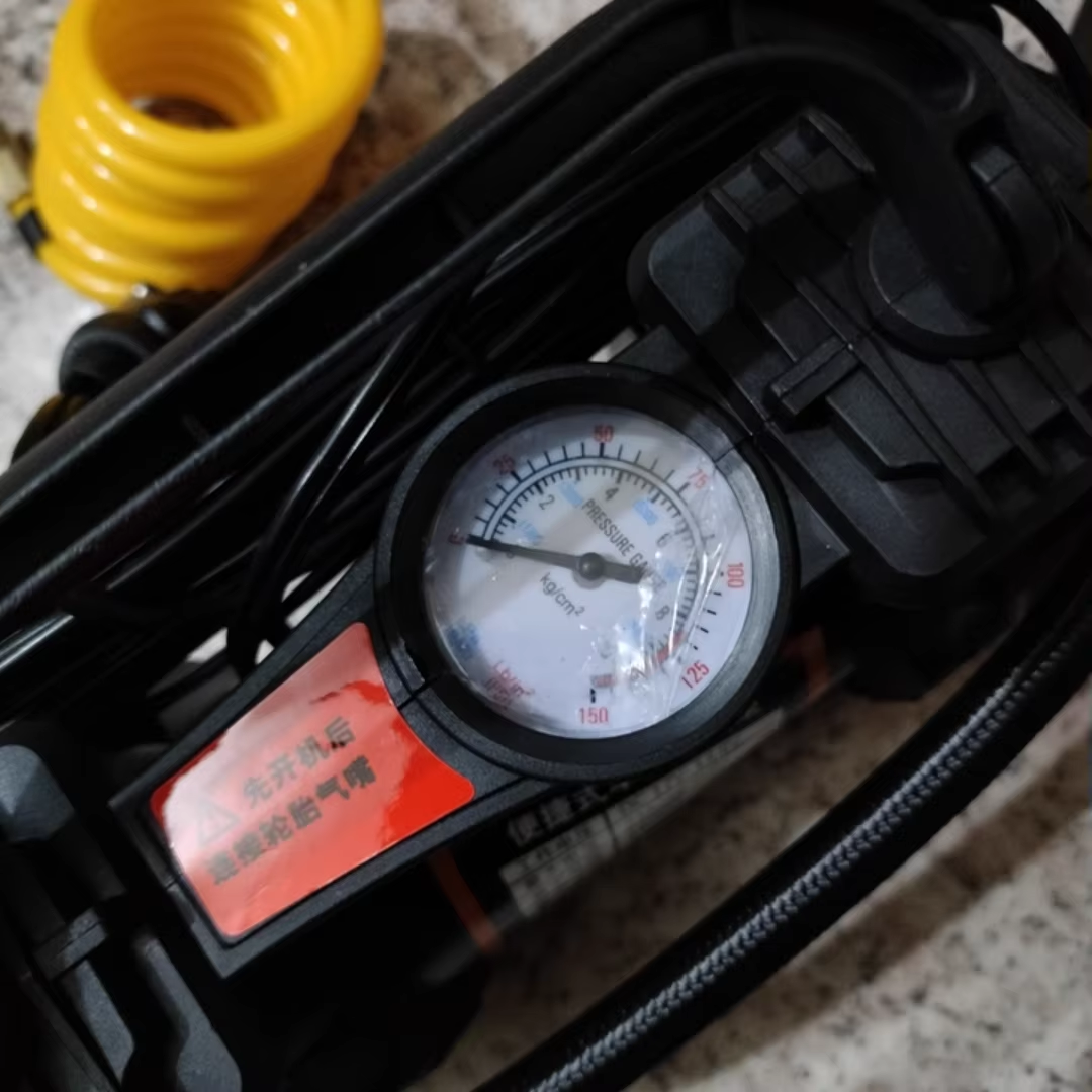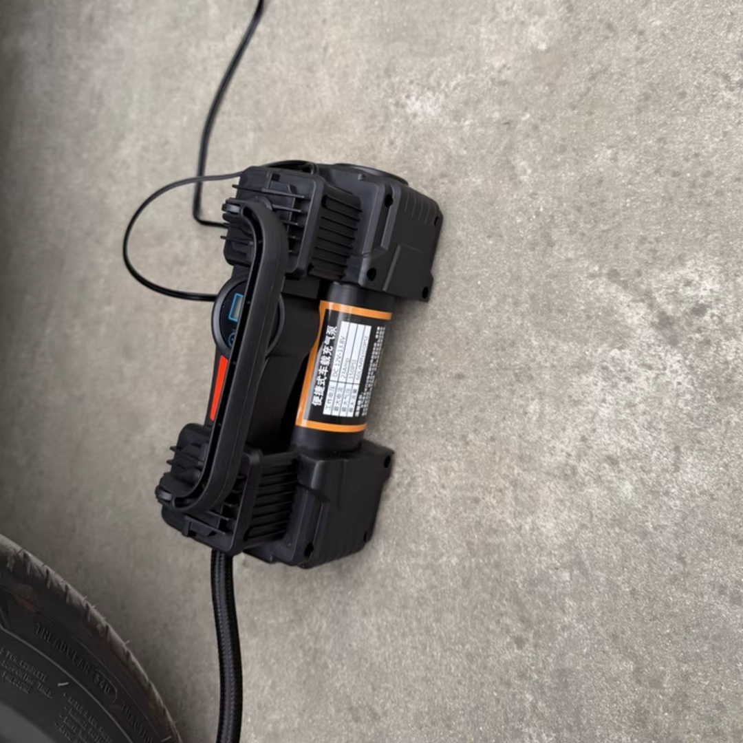 Portable mini 12V powerful dual-cylinder air compressor tire electric pump, with extension cord and battery clamp