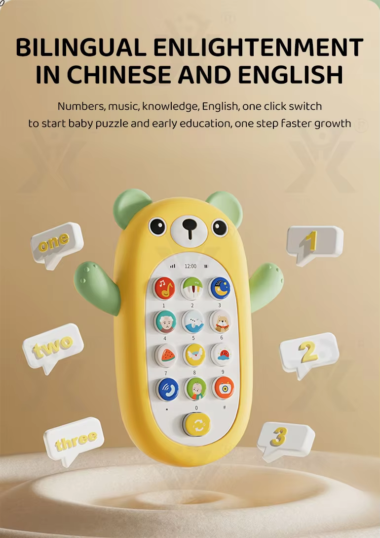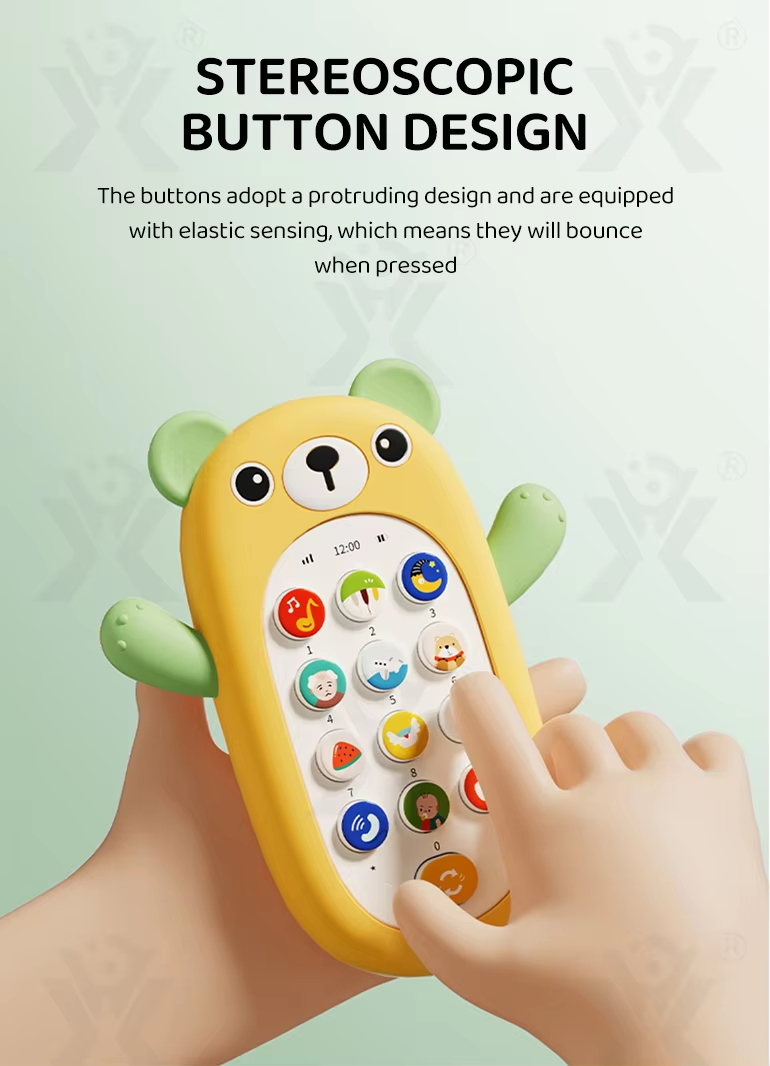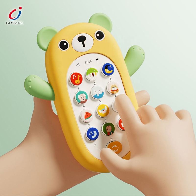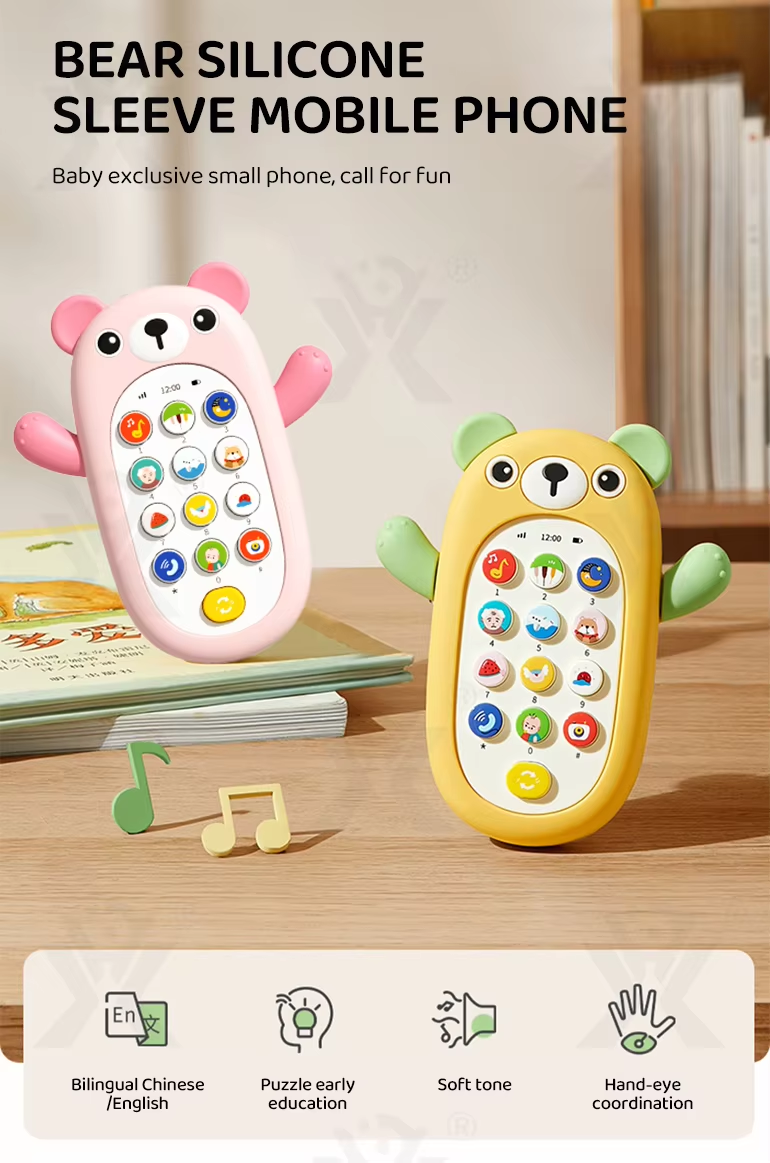 Children's early learning toys electric music cartoon bear silicone cover mobile phone children's toy mobile phone