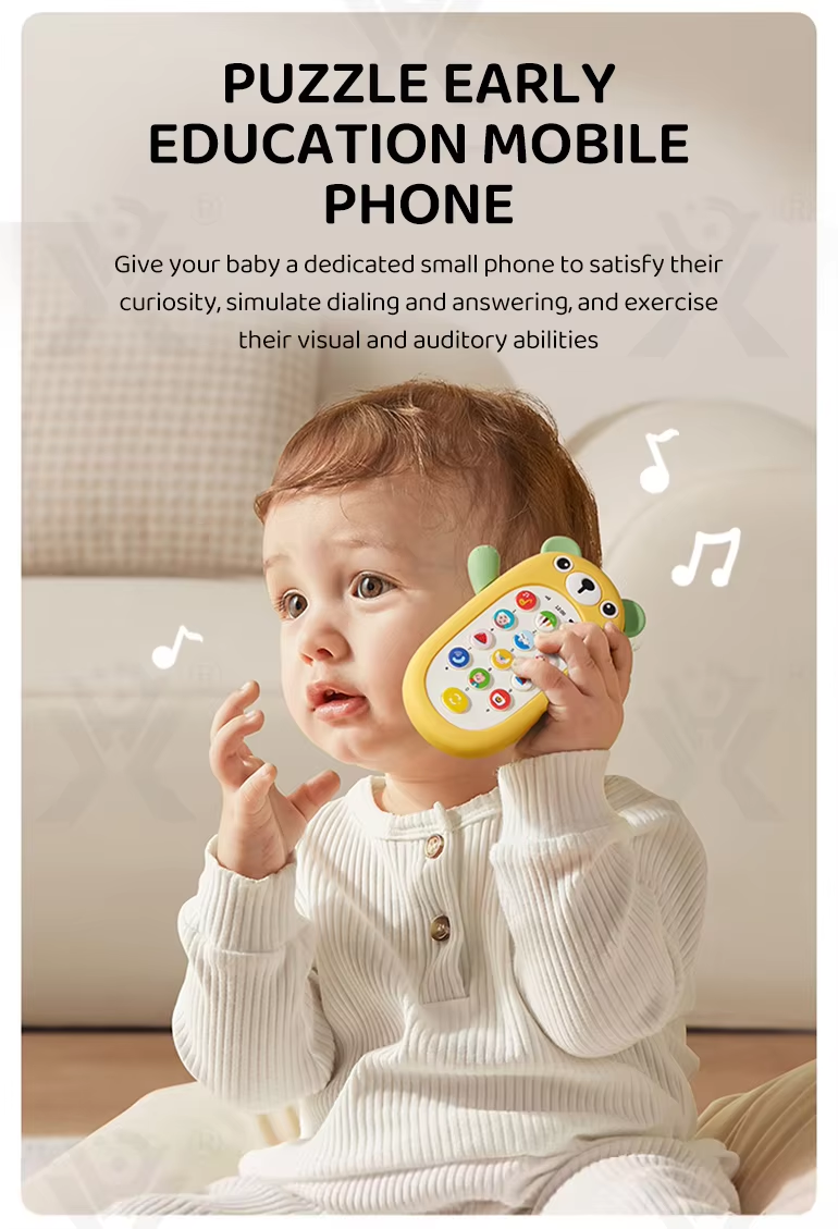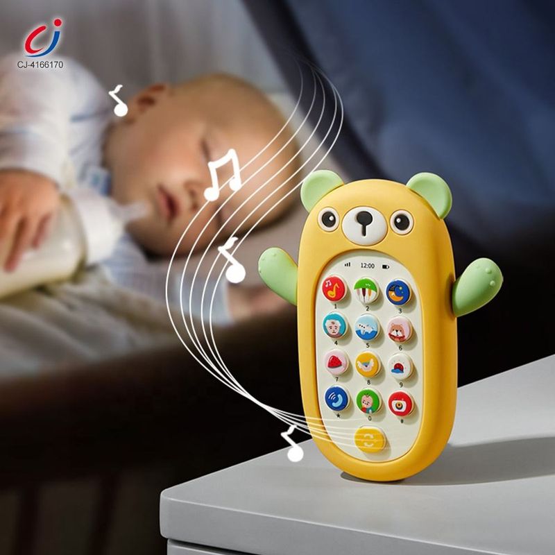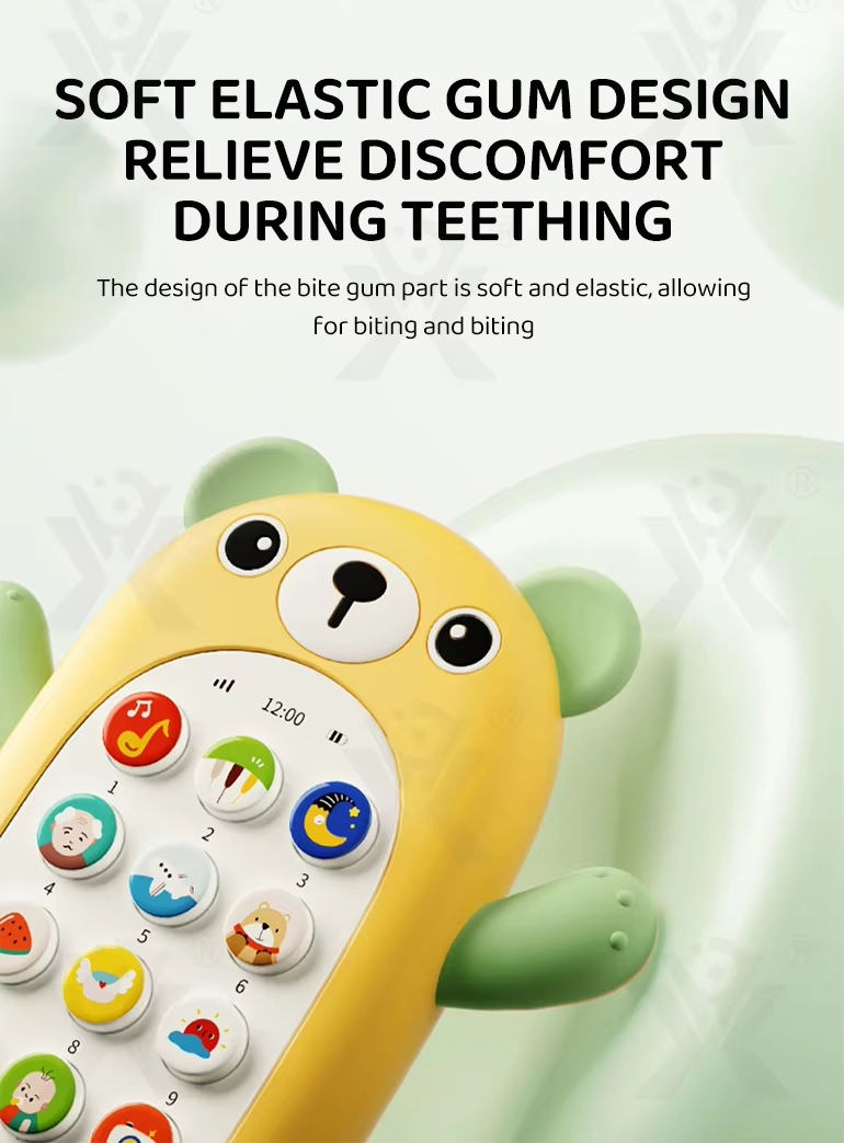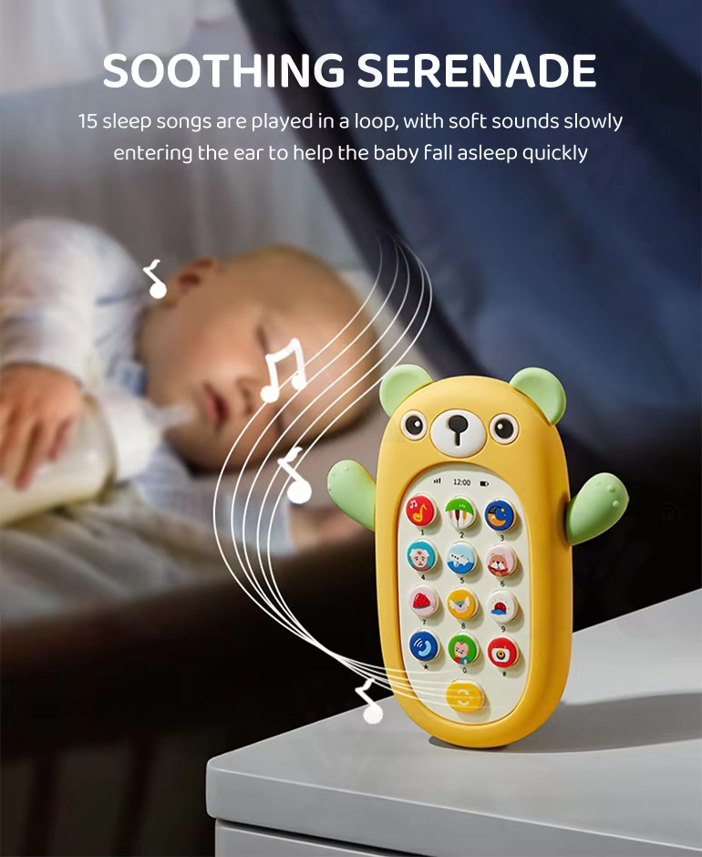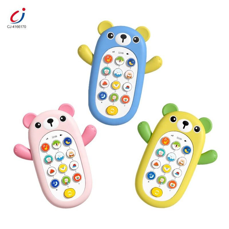 Children's early learning toys electric music cartoon bear silicone cover mobile phone children's toy mobile phone