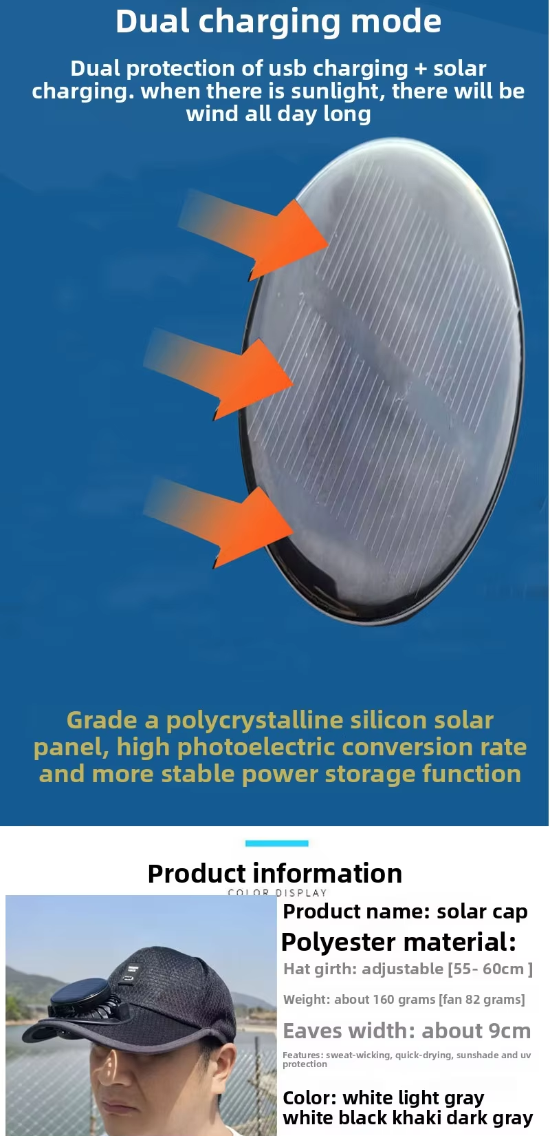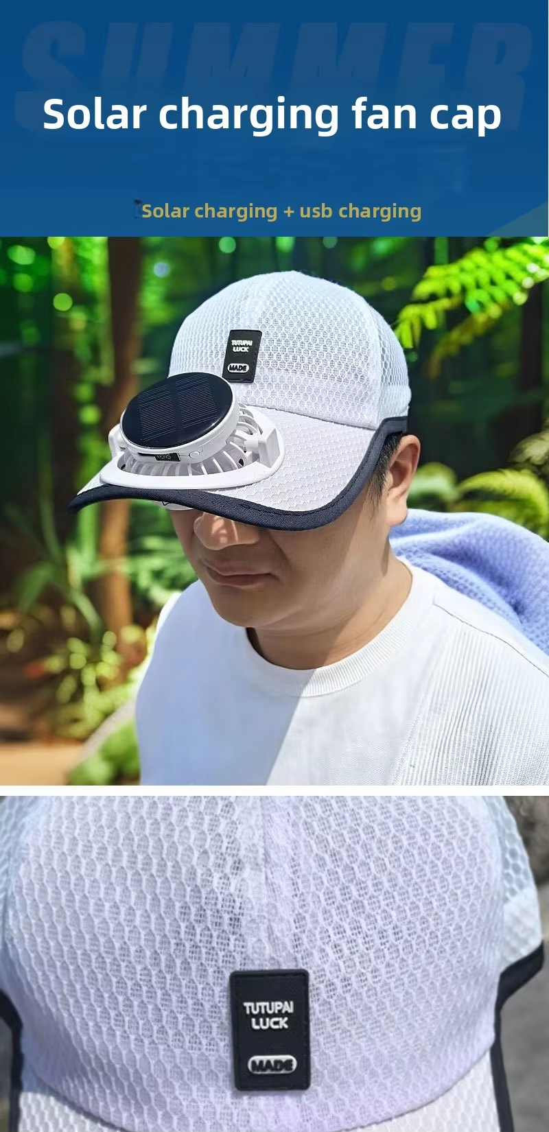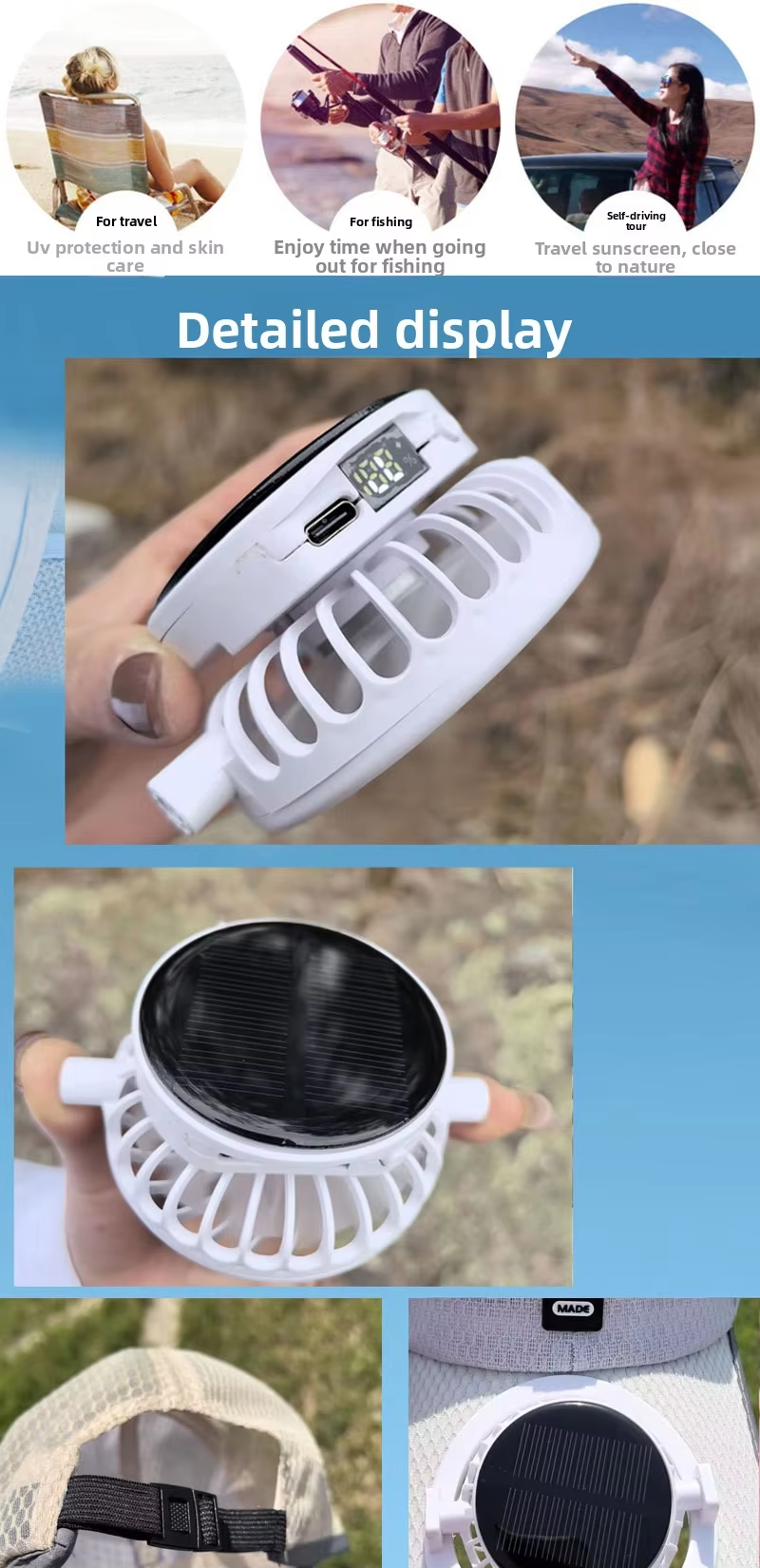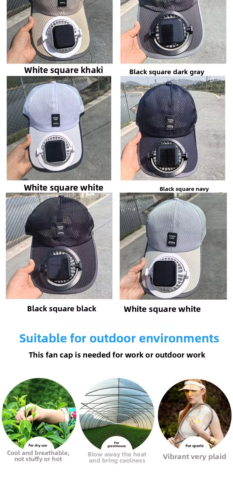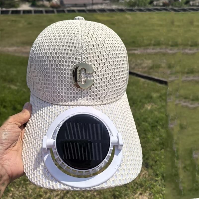 New solar-powered charging hat with fan brim, summer extended brimmed mesh ventilated sun protection couple's style sun hat