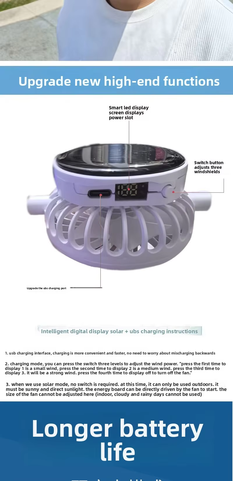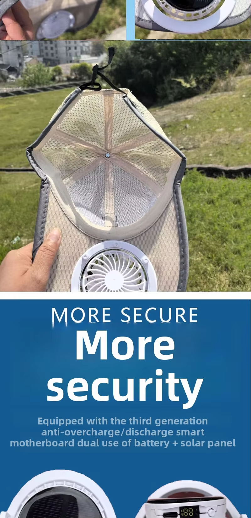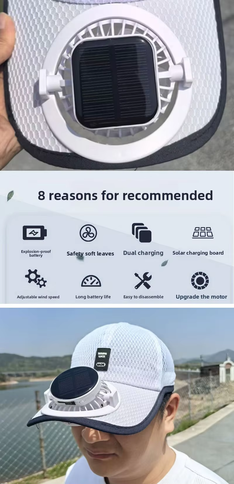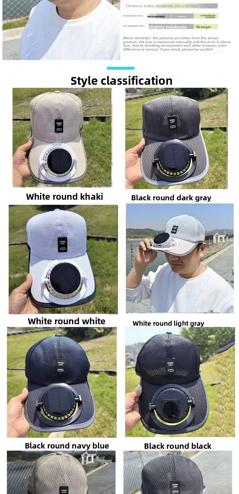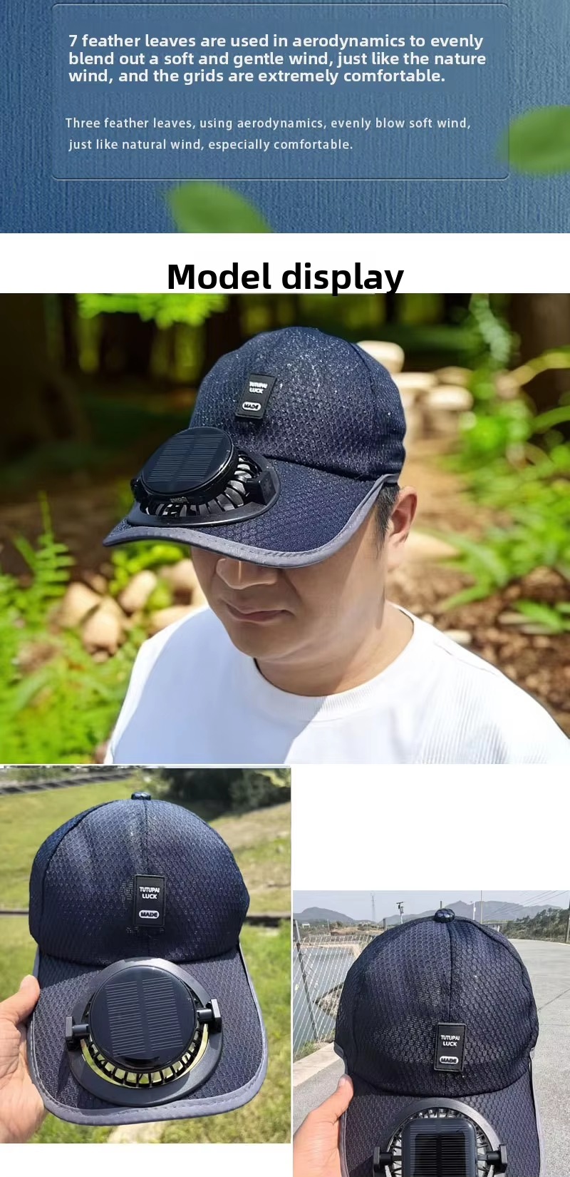 New solar-powered charging hat with fan brim, summer extended brimmed mesh ventilated sun protection couple's style sun hat