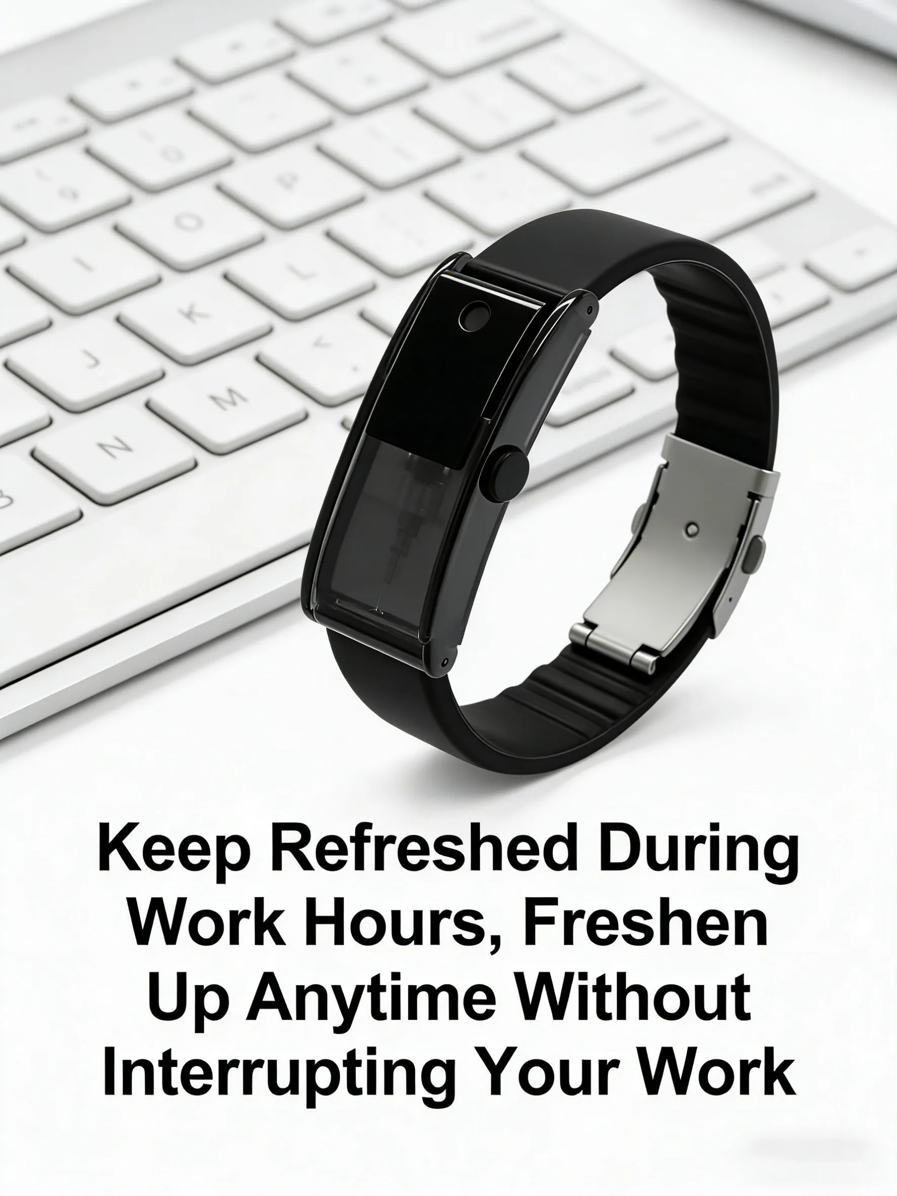 A stylish, adjustable wristband with a built-in spray dispenser – carry your favorite scent anywhere, hands-free. Refillable, sweatproof, and lightweight. Perfect for daily wear, sports, or travel.