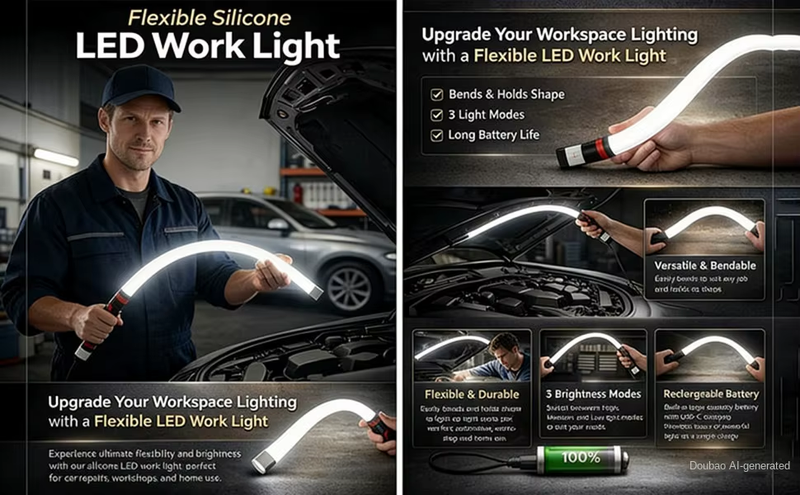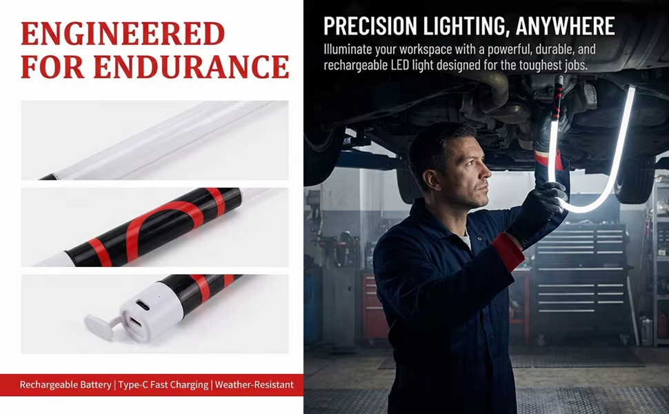 Portable rechargeable LED light bar, flexible inspection work light, suitable for car repairs